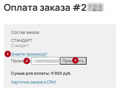 2. Указать промокод партнера на русском языке, шрифт может быть любой